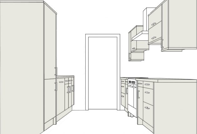 Двухрядный вариант. Для узких и маленьких помещений также может подойти двухрядная кухня. Однако стоит учесть, что после установки такого комплекта желательное расстояние между двумя стенками не должно быть меньше 120 см.