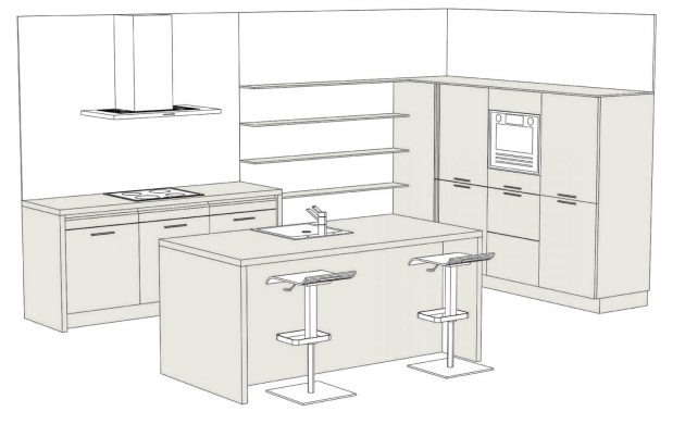 L-образную кухню. Классический вариант кухни, который предлагается мебельными производителями. Такой комплект чаще выбирают покупатели, кухня которых имеет квадратную форму. Труднодоступные зоны в угловых шкафах можно оборудовать выдвижными системами;