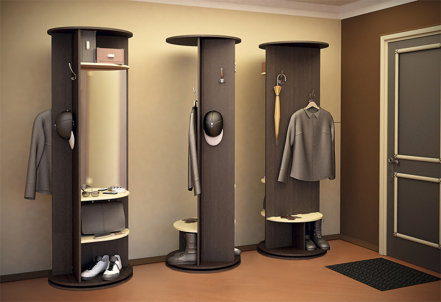 - Шкаф. Ни для кого не секрет, что главным предметом любой прихожей считается шкаф. Представить себе это помещение без шкафа сложно. Сегодня широкую популярность в таких помещениях среди клиентов и нашего магазина считаются шкафы-купе. Благодаря системе открывания и закрывания дверей такой элемент мебели будет уместен как просторной, так и в узкой прихожей. Иногда шкаф-купе не смотрится в помещении или не проходит по параметрам, тогда лучше отдать предпочтение небольшому шкафу с антресолью и тумбочкой для обуви. Экономить место в таком помещении не стоит, ведь шкаф хоть и должен быть компактным, но, несомненно, вместительным;